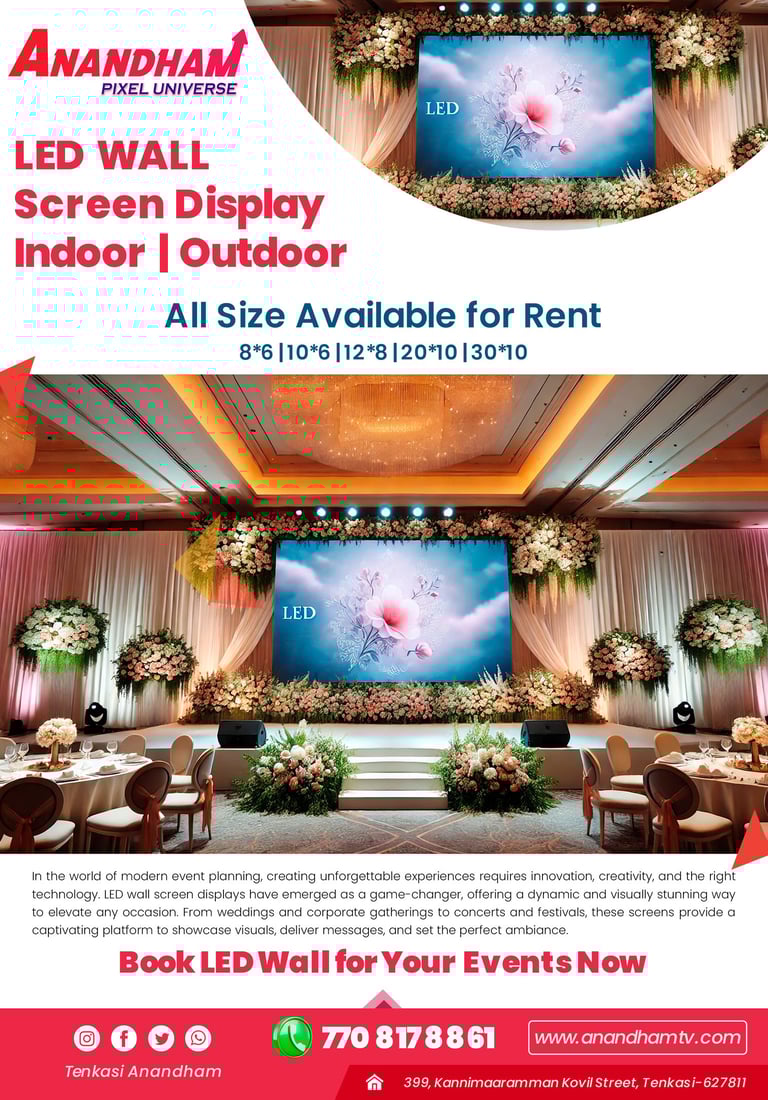 Anandham Pixel Universe specializes in wedding photography, event management, and stunning visual displays. We expertly capture your special occasions with creativity and professionalism.